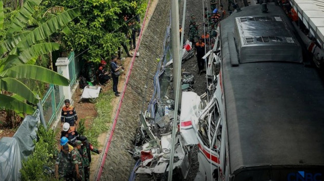 19 kereta jarak jauh dibatalkan dan 6 terlambat parah setelah tabrakan KRL di Bekasi, Senin (27/4). Total 25 perjalanan terdampak.
