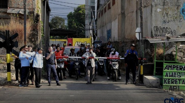 Pasca tabrakan kereta-taksi di Bekasi Timur pada 27 April, Dishub Kota Bekasi pasang palang manual di perlintasan Jalan Ampera, dijaga petugas tiap hari.